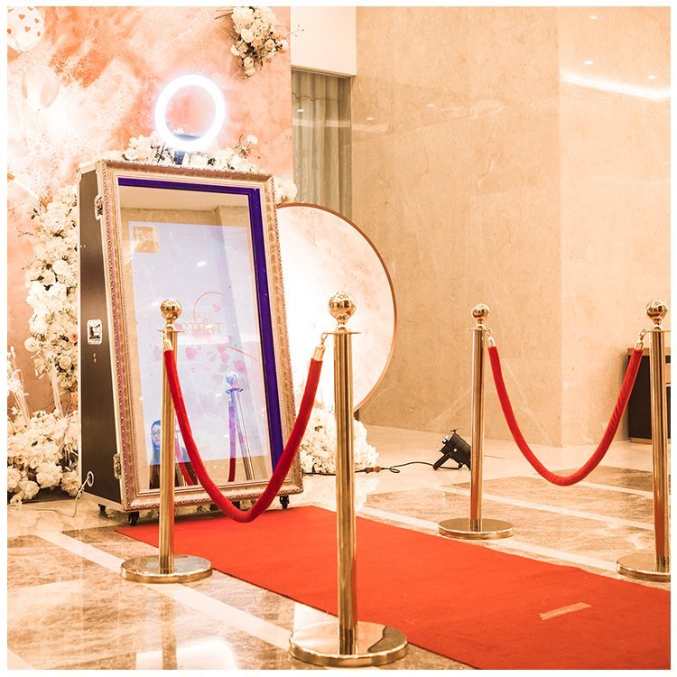 Ein Spiegelfotobox verwendet einen großen, lebensgroßen Spiegel, in dem die Gäste sich selbst sehen und posieren können, während sie von kurzen Videoanimationen geführt werden. Im Gegensatz zu herkömmlichen Fotokabinen sind Spiegelfotobox interaktiver, da die Gäste durch Berühren des Spiegels ihre Unterschrift, Sticker und Emojis zu ihrem endgültigen Bild hinzufügen können.